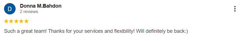 Such a great team! Thanks for your services and flexibility! Will definitely be back:) – view the testimonial